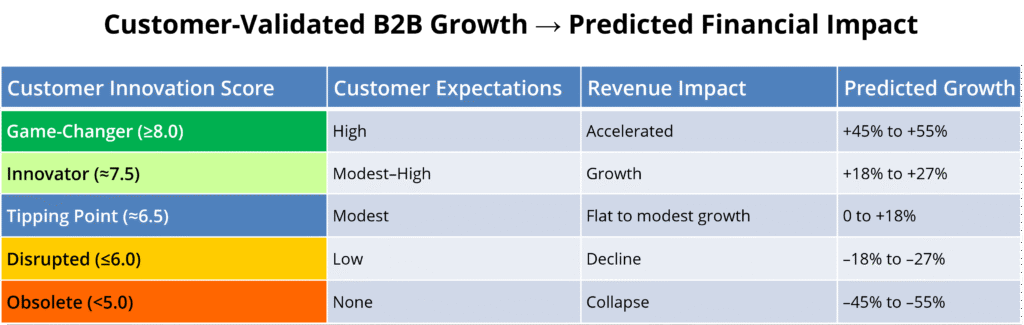 Build an expanding pipeline of B2B companies breaking revenue thresholds with the Customer Innovation Score™.